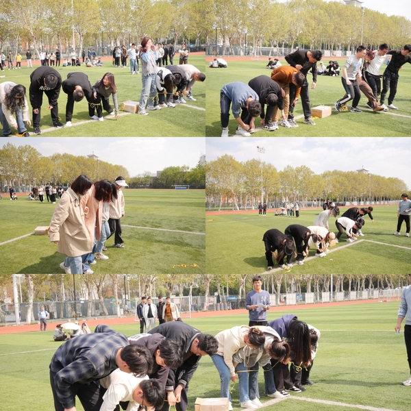 此次运动会兼顾趣味性和技巧性,设置指压板跳绳、腿夹扑克跳、四人五足、筷子运乒乓球等互动项目。比赛过程中,每位同学都表现出了极佳的运动状态,大家配合默契、相互鼓励,场面气氛热烈、轻松愉快。赛后对获胜同学进行颁奖以及合影留念,给充实的研究生生活添上多彩的一笔。