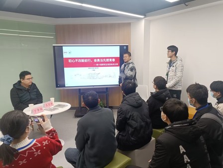 活动围绕“榜样力量”展开,王京平首先从自身科研、学习及实践方面向同学们分享了经验、心得。他建议在积极投入科研工作的同时,多参加一些学术研讨会议,拓宽视野、启发思路。丁章俊通过志愿服务经历展示了作为一名党员应有的责任与担当,他鼓励同学们清晰内心所需,认真把握研究生生涯。分享后的提问环节,新生们敞开心扉,就科研、学习中的困惑向分享嘉宾提问,学长们细心解答,给出了具有指导作用的建议。时间在你一言我一语的交流中飞逝,同学们也纷纷表示受益匪浅。