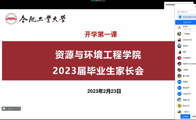 为了进一步促进毕业生高质量就业,2月23日晚,资环公司召开2023届本科毕业生 “云”家长会。2023届全体毕业生家长参加了此次会议。