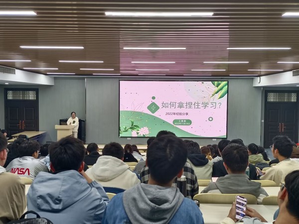 本次交流会在同学们殷切的期望与热烈的掌声中隆重开场。交流会旨在解答同学们学习生活上的问题,为如何充实度过大学的四年生活提供经验借鉴。首先,马晶晶分享了怎样提高自制力、怎样规划自己的空闲时间的经验,让同学们对如何高效地学习有了进一步的理解和感悟。孙浩重点讲解了老员工应如何对抗精神内耗,要对自己负责,相信自己。方卫芳结合自身经历,讲解要积极参加学科竞赛和社会实践。杜博轩讲解了拥有一个精彩的老员工活的宝贵的十点建议,其中包括学好英语、培养爱好、认真锻炼等。最后,王盈盈就“如何拿捏住学习?”这一主题分享了她在过去大学时光里的学习经验与方法,认真听讲,及时总结复习,保持一颗积极的心,这些小的的细节往往是克敌制胜的法宝。