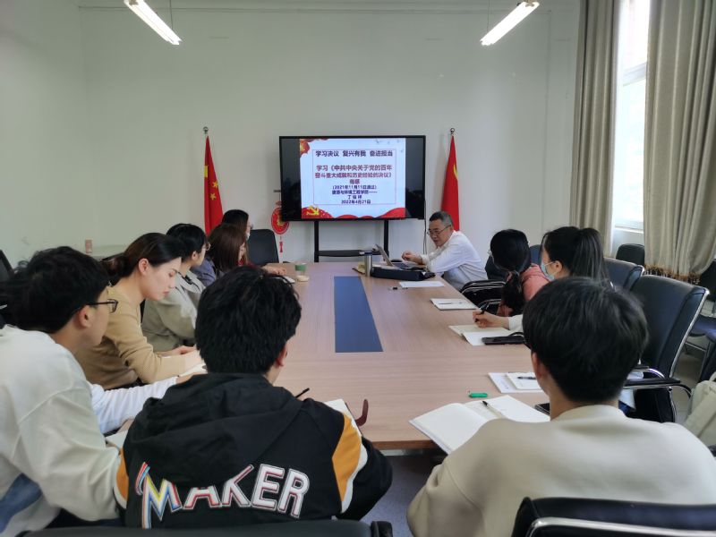 4月21日,丁俊祥老师带领2019级环境工程专硕党支部在校员工于西教304会议室开展了《述往思来向史而新》以及学习《中共中央关于党的百年奋斗重大成就和历史经验的决议》有感的党课学习,主讲人分别为支部王晓曼同学以及丁俊祥老师。