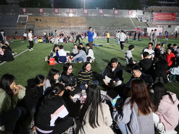 当操场最后一缕霓虹灯渐渐熄灭,欢声笑语也便停在这片星空下。活动结束后,参与的老师同学纷纷表示这是一个令人难忘的活动。2018级博士生徐凯杰表示,大家席地而坐、谈天说地,为师生相互了解和交流提供了轻松的气氛;五一假期能够以这种方式度过,感觉很好。19级地质学硕士生崔杰说,毕业前在校园里与老师同学齐聚操场,让自己与大家的距离一下缩短了,心也贴近了。21级资源与环境硕士生李志豪作为研会成员全程参与活动的志愿服务,他表示为师生提供服务既是“乐人”,也是“乐己”,看着老师同学们脸上幸福的笑容,自己也非常满足。