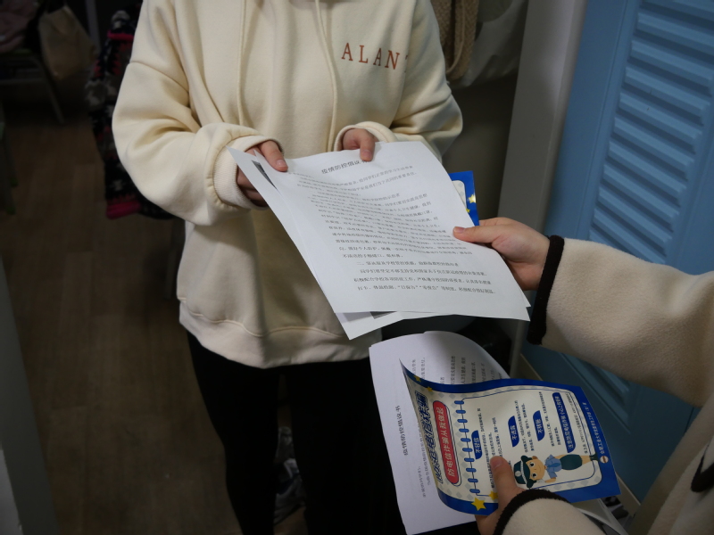 入户宣传“紧”起来。志愿者们深入宿舍、实验楼,进行科学防疫倡导,向同学们分发了防疫倡议书,倡导大家进行科学防疫,以乐观的心态面对疫情形势,不造谣、不传谣。“同学你好,请你一定要做好疫情防控工作,戴口罩、勤洗手、测体温、少聚集。”这是资环公司研究生党员志愿者在疫情防控宣传中进行防疫宣传的介绍,积极提醒各位同学注意日常防护,做好科学应对,引导广大研究生提高文明素质和自我防护意识。