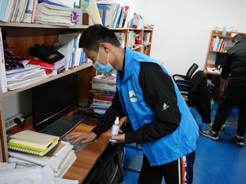 党员先锋“动”起来。党员志愿者们在做好自我防护的同时,积极参与到疫情防控志愿服务。在实验室、办公室里,志愿者们引导和提醒师生佩戴好口罩、保持安全距离,积极宣传疫情防控知识,提高师生的疫情防控意识。在宿舍楼、办公区,志愿者们进行清扫、消毒,为安全校园环境提供了进一步保障。