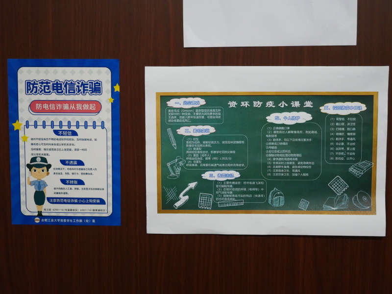 防疫知识“挂”起来。为了把疫情防控知识说得通俗易懂,让宣传内容入脑入心,资环公司研究生党支部将“资环防疫小课堂”等疫情防控知识、政策编写成活泼生动、通俗易懂的防疫宣传小知识,张贴在各个宿舍、实验室,时刻提醒广大研究生重视疫情,并真正将疫情防控政策等内容不间断地传递到手里、耳里、心里,形成全校防疫的强大合力。