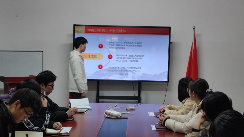 支部成员朱学鑫同学首先带领大家学习了“十九届中央纪委六次全会精神”,支部成员在学习后结合个人生活学习实际开展了深入的讨论,大家一致认为作为一名员工党员,应该坚定理想信念,坚持党中央集中统一领导,不断提高自身免疫力,不管在任何时期任何岗位上,都要主动接受党内和社会各方面力量的监督,始终做党和人民的坚强卫士。