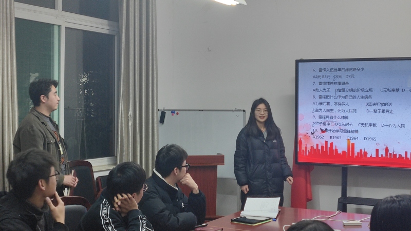 支部成员冯晨同学讲述了关于入党誓词的几次变化,带领支部成员重温不同时期入党誓词及在特定历史背景下的深刻内涵。支部成员方卫芳同学带领大家重温雷锋精神,向大家讲述了雷锋的一生,雷锋精神以及新时代雷锋精神的内涵。之后,方卫芳同学就雷锋同志的一生及雷锋精神的内涵进行现场知识问答,全体成员在问答过程中加深了对新时代雷锋精神的理解和感悟。