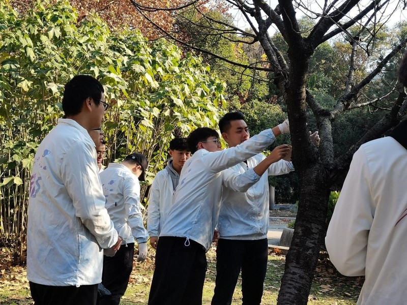 此次挂牌活动,从前期校园内植物类别、数量的统计,到后期的排版设计、制作悬挂,由班级同学们集中商讨、精心设计,并在大家共同努力下顺利完成校内20余种绿植、24个“名片”的挂牌工作。“名片”上标注植物学名和功能作用,为广大师生在观赏美景的同时,增进对各种植物的了解。挂牌活动结束后,同学们还进行了校园清扫活动。活动中,同学们热情高涨、分工合作,认真清扫地面垃圾和散落在树林间的塑料袋、废纸屑、易拉罐等,用实际行动建设美丽校园。