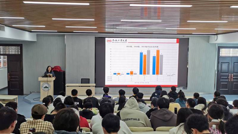 班会上,王锐琴向同学们展示了公司2015-2017级员工毕业去向,通过数据和图表直观简明地体现公司近三年来不同专业毕业生在升学、就业上的比例,给予同学们更为贴切的参考。随后,王锐琴老师结合工作中的详实案例,就同学们如何做好职业规划给出具体的建议。她提醒同学们要结合自身情况、职业环境等综合因素,进行理性抉择,切不可盲从。面对考研,要分析考研的利弊并询问自己:是否有学习能力可以应付考研的知识内容?是否有足够的毅力坚持到走出考场?读研后又是否有信心能够顺利毕业?同时,王锐琴老师还就近年来公司的招聘情况、企业用人需要求、应聘常见问题等,与同学们进行深度的交流,并动员同学们要认清就业形势,坚定就业信心;要明确就业目标,放平就业心态;要珍惜就业机会,积极主动行动。