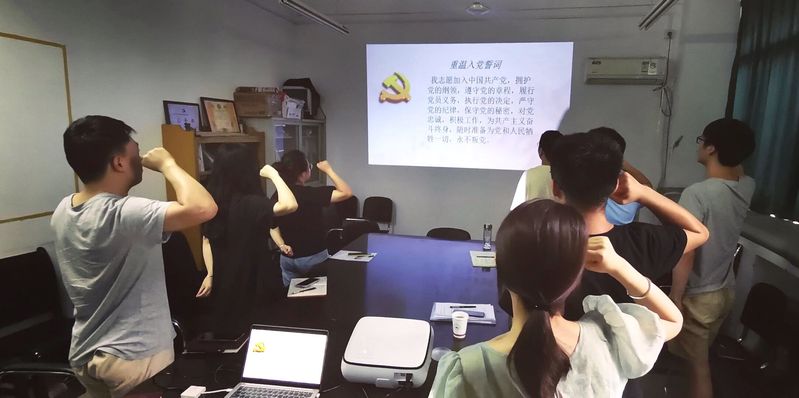 党课结束后,支部纪检委员陶克勤带领支部党员重温入党誓词,大家高举右手庄严宣誓,重温自己对党忠诚的誓言,表达了为党的事业奋斗终身的决心。