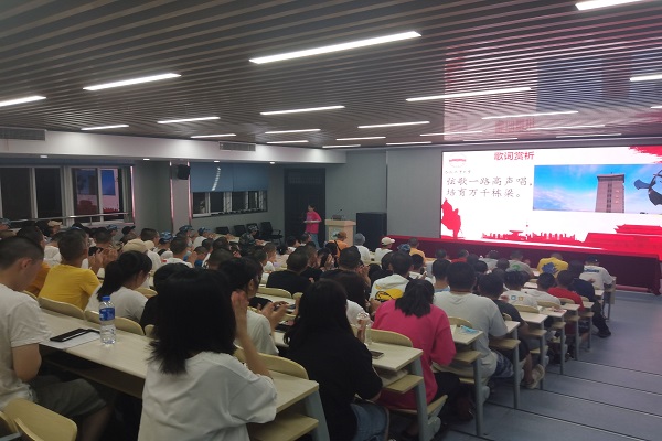 随后,员工会大二年级地理信息科学专业的王晨雨同学带领新生赏析校歌歌词,详细解释了每句歌词的由来和背景意义,并教授了一些校歌歌唱的基本技巧。最后,全体大一新生齐唱TapTap点点校歌,以青春之歌奏响多彩老员工活。