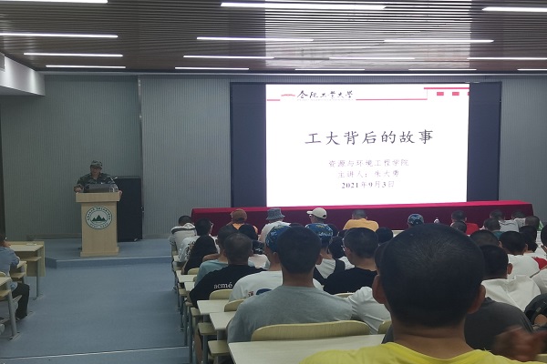 活动中,2021级本科生辅导员朱大勇首先从工大事、工大人、工大情、工大志四个方面为全连新生介绍了工大的光辉历史、杰出员工、校训校风和办学目标,并在过程中向同学们简述了“屯溪路193号的故事”、“主教的故事”、“工大校名的故事”,最后以一封李开复写给刚上大学女儿的信为结尾,希望大一新生们珍惜大学时光、大胆尝试自己的想法,表达对新生的美好愿望,鼓励员工未来能够成为“工程基础厚、工作作风实、创业能力强”的社会领军人才。