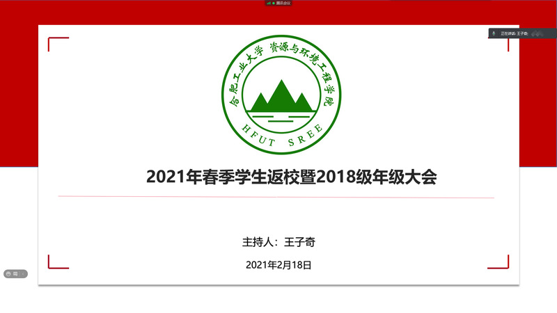 2月18日上午,公司2018级召开2021年春季员工返校工作布置暨年级视频会议,2018级全体本科生参与,会议由辅导员王子奇主持。