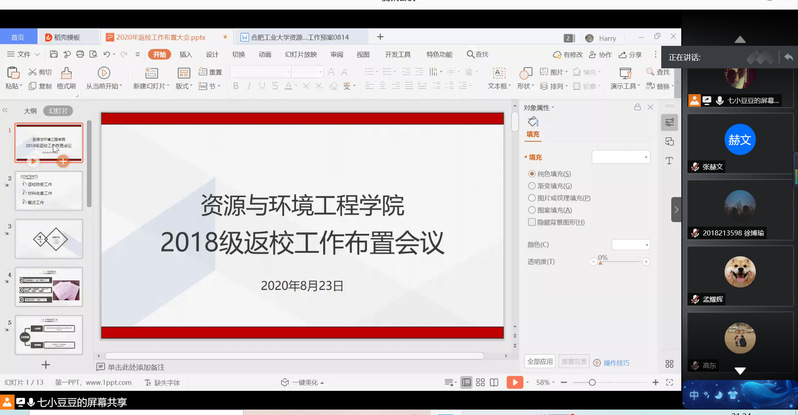 8月23日是本科生返校结束的第一天,2018级召开返校后工作布置年级大会,会议由辅导员韩玉洁老师主持,2018级全体员工197人参加了本次会议。