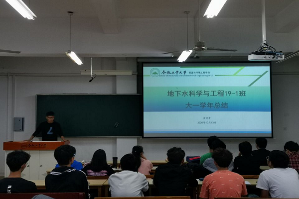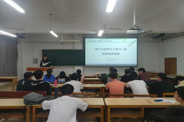 2020年10月13日下午四点在五教406,地下水科学与工程19-1班进行班委述职暨班委竞选大会,地下水全体同学参与,由班长童宝才主持会议。