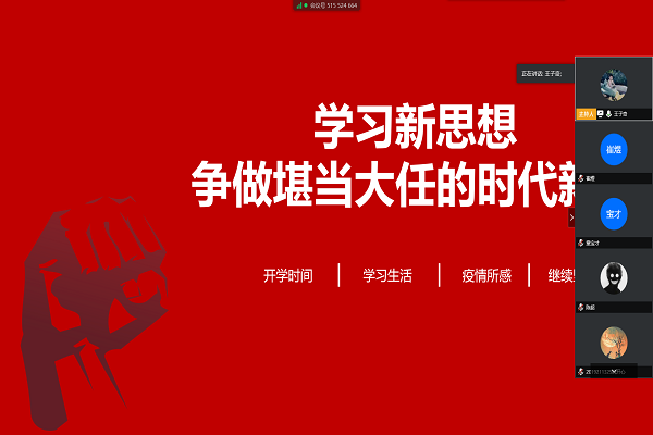 2020年5月6日,地下水19—1班于“腾讯会议”平台举行线上小班辅导班会,由19级辅导员王子奇为同学们开展“学习新思想,争做堪当大任的时代新人”小班辅导,地下水19—1班全体同学参与。