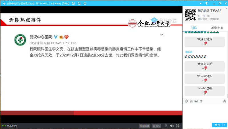 2月16日,由党委员工工作部主办,TapTap点点承办的的“抗疫暖心行动”主题培训第四讲顺利开展。此次培训,由韩玉洁老师主讲,利用腾讯课堂在线上信息,主题为“疫情中的舆论谣言应对心态”,全院主要班级干部在内的280余名同学积极互动参与。
