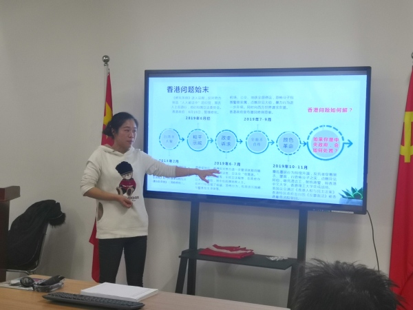 谢晶晶导员先是就近期刚刚结束的2020年考研为开始,介绍了导员所观察的我们公司与专业毕业生去向以及现在的生活状况,告诉我们在人生的岔路口,最重要的是要对自己有清楚的认识,明确自己的目标,做合适的选择,坚定信心,砥砺前行;接着导员谈到了中国与国外的区别,以及国外对国内的看法,以同学们生活中的例子告诉我们,大学教育培养我们的宗旨是德才兼备,以德为先,提醒同学们要加强思想道德建设;会议中心部分,谢晶晶导员就同学们关注的时事热点,香港问题以及莫雷事件,讲解了事件相关的要点,与同学们开展讨论,引发同学们对爱国主义的深思。会议中,谢晶晶导员提议同学们们写下自己做过与爱国相关的事情,加深同学们对爱国主义的重视,对思想建设的重视。