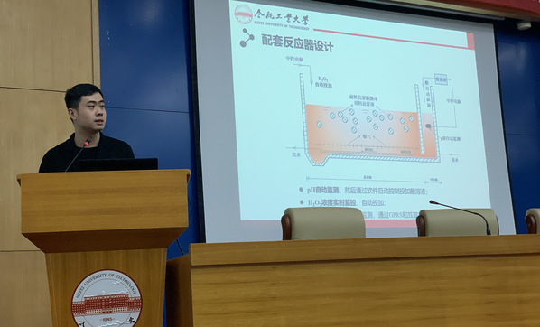 丁文东从自己个人简介、参赛经历、个人感悟三个方面进行了经验分享,他首先描述了自己从17年到18年的参赛经历,随后以自己的项目—工业废水处理讲述了自己在参赛过程中如何发现问题、如何思考以及最后如何解决问题,最后他以自己多做、多想、多写的个人感悟号召大家在参赛过程中不畏艰难,迎难而上并最终取得好成绩。