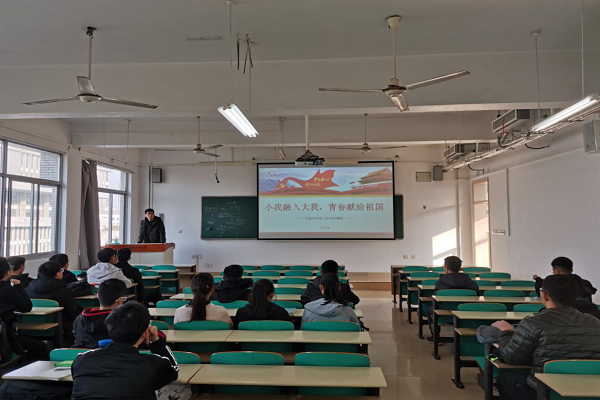 2019年12月12日15:00,勘查技术与工程19-1班同学在第十二教学楼303召开了以“小我融入大我,青春献给祖国”为主题的班会。本次班会由辅导员王子奇主持。
