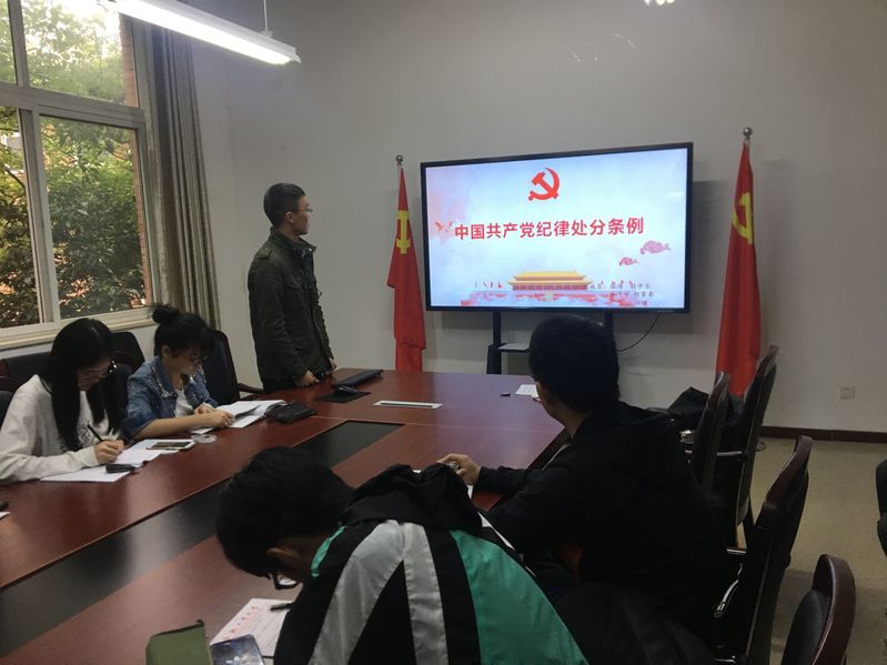 集中学习学习阶段,卢可佳同学从两项党内法规的修订背景、廉洁自律准则的修订解读、廉洁自律准则的具体内容、深入学习廉洁自律准则四个方面位同学们介绍了中国共产党廉洁自律准则,帮助同学们进一步明确了准则的内容和贯彻《中国共产党廉洁自律准则》的重要意义。毕飞宇同学带领同学们学习了《中国共产党纪律处分条例》的主要内容、重大意义,通过学习同学们认识到新修订的《中国共产党纪律处分条例》坚持问题导向,针对管党治党存在的突出问题扎紧笼子,实现制度的与时俱进,使全面从严治党的思路举措更加科学、更加严密、更加有效。