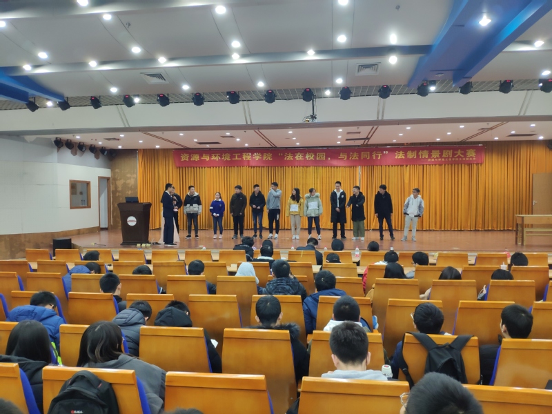 12月9日晚7:00,TapTap点点员工会生活部“法在校园,与法同行”法制情景剧大赛在翡翠湖校区图书馆报告厅成功举办,资环公司全部大一班级参赛,全体2018级同学观看比赛,员工会主要负责人担任评委。