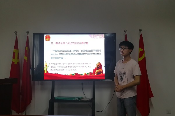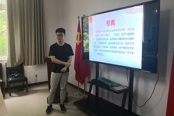 2018年6月22日星期五下午,环境15-1班应公司要求,由胡振宇和高旭同学为班级全体同学上了一次党课,班级全体到齐,认真接受两位同学的指导。