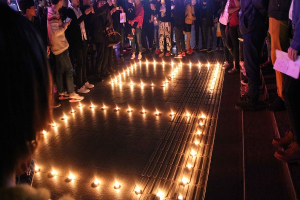 本次活动由郑旭聪同学提议,班长郑涛组织。前期联系了明教寺工作人员,于晚间8.30熄灯,随后同学们积极参与其中,摄影组、宣传组、横幅组还有蜡烛组等都纷纷摩拳擦掌。八点一刻,同学们聚集在明教寺前,首先是准备活动,我们将准备好的蜡烛摆放成60的数字,响应中国2018年地球一小时主题“开启我的60+生活”。8.30明教寺熄灯后,我们陆续将蜡烛点燃,硕大的、由烛火组成的60字样映入眼帘,烛火之光在夜幕下显得尤为明亮,不一会儿便将步行街涌动的人潮吸引了过来。随后,大家将横幅拉好,全班同学在烛火前高声喊出了我们的口号——地球一小时,我们在行动。与此同时摄影组同学们也纷纷行动起来,记录下了这精彩的时刻。此后大家纷纷给围观行人悉心讲解、宣传,途中还有不少人们参与其中,与我们一起拉横幅并合影等。虽然只是一个小小的宣传活动,但同学们都满怀热情,尽自己的努力将环保意识带给大家。一小时很快便过去,烛油渐渐燃尽,我们的声音也慢慢变得嘶哑,活动进入尾声,我们将残烛等垃圾收拾完毕,带着些许疲惫踏上了返校的路途,却不曾想,同学们的脸上都挂满了笑容。