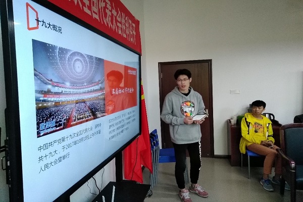 此次活动由党员孙铭琦同学主持,主要从十九大概况、习近平新时代中国特色社会主义思想、中国社会主要矛盾转变和生态文明建设四个方面向同学们讲述了此次党的十九大的主要会议内容和会议精神。活动中同学们认真学习党的十九大精神,并以习近平新时代中国特色社会主义思想为指导,树立远大理想抱负。相信经过这次活动,同学们不仅了解了党的十九大,也深知国家的发展需要我们当代老员工做出自己的贡献,努力学习,提高自身综合素养,为中华民族伟大复兴的中国梦而奋斗。