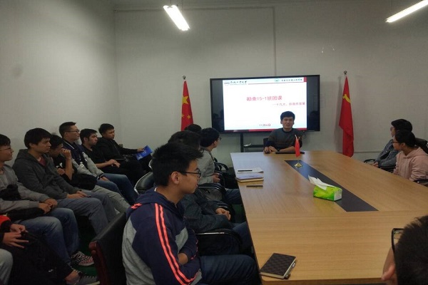 此次活动由团支部书记王子奇同学主持,旨在将十九大精神落实到每位同学身边。在会中他谈到,十九大报告中提出了习近平新时代中国特色社会主义思想,并用八个“明确”、分十四条进行了具体阐明。习近平新时代中国特色社会主义思想是习近平总书记系列重要讲话精神和治国理政新理念新思想新战略的集大成,是各种经验性成果的集中展示,是对马克思列宁主义、毛泽东思想、邓小平理论、“三个代表”重要思想、科学发展观的继承和发展,是马克思主义中国化最新成果,是党和人民实践经验和集体智慧的结晶,是中国特色社会主义理论体系的重要组成部分,是全党全国人民为实现中华民族伟大复兴而奋斗的行动指南,必须长期坚持并不断发展。我们一定要认真学习,深刻领会其精神实质,并自觉用习近平新时代中国特色社会主义思想指导工作。
