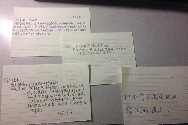 班级里每一位同学为自己的母亲写下了祝福,也有人回忆了母亲含辛茹苦的往事。之后,大家也承诺在母亲节当天为母亲打电话送去母亲节祝福。