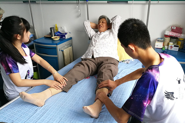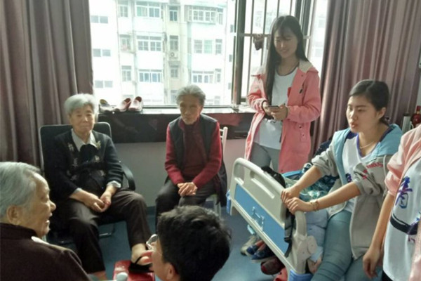 在老年公寓工作人员的带领下,志愿者来到老人们的房间,给老人捶背、捏腿,帮他们穿衣服,主动陪老人们聊天解闷。老人们向志愿者讲述了自己年轻时的经历与现在的生活状况,志愿者则向老人们讲述有趣的工大故事,让老人感到温暖、快乐,老人与志愿有说有笑、其乐融融。最后,志愿者还清唱了红歌,老人们纷纷为志愿者打起了节拍,不断拍手称赞。期间,一位老人的儿子打来电话,当得知志愿者来老年公寓看望老人们,老人的儿子非常高兴,在电话里表达了对志愿者的感谢。活动结束后,老人们与志愿者依依惜别。