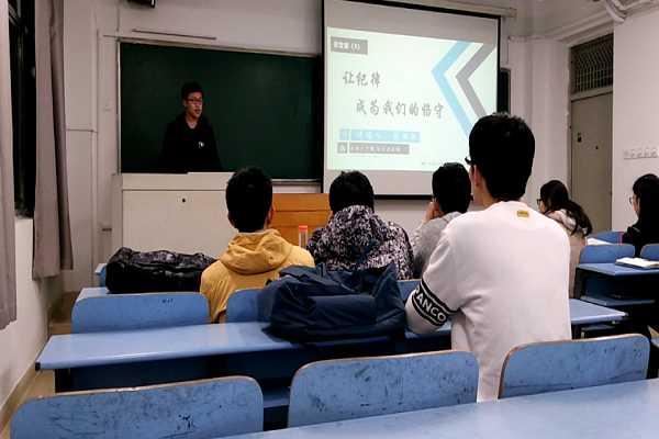 本次微党课,支部组织委员闫旭政同志为大家带来了一个熟悉而又陌生的话题——纪律的意义。纪律,是我们每个人都应该去遵守的。而对于党员和发展对象们,恪守纪律则变得更加重要。在简单的介绍本次党课的主题后,主讲人开始了他的讲述。“众所周知,我们每天都在被各种各样的纪律所束缚。从小到大,各种员工守则,各种法律法规,各种道德约束,无时无刻不在规范着我们的行为。但我今天为什么拿出这个话题来和大家分享呢?不是为了告诉大家我们要遵守纪律,而是要告诉大家,我们要恪守纪律。”“怎样做到恪守纪律呢?我认为没有什么好的方法,最重要的,是我们必须做到严于律己。就像导员告诉我们的那样,每时每刻都会有人在看着我们。我们必须起到一个良好的带头作用,用自己真真切切的行动,用自己对自己的严格要求,去赢得大家的认可。”讲述过程中,主讲人从纪律的普遍性入手,讲述了中国共产党的三大纪律,又以此告诫大家在日常生活中应该恪守纪律。每一位发展对象都认真的聆听着,并下定决心要恪守纪律,争做一名合格的共产党员。