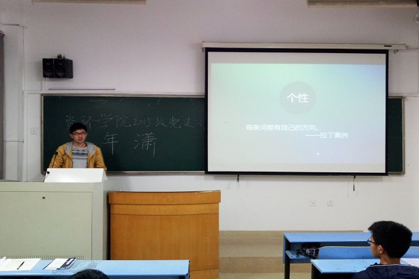 为了进一步丰富党员及发展对象的教育形式,提高支部成员的学习主动性和积极性,更好地践行党员全心全意为人民服务的宗旨。3月31日晚9点,资环公司翡翠湖校区2015级党支部全体成员为发展对象讲党课第三期活动于6教105顺利举行。