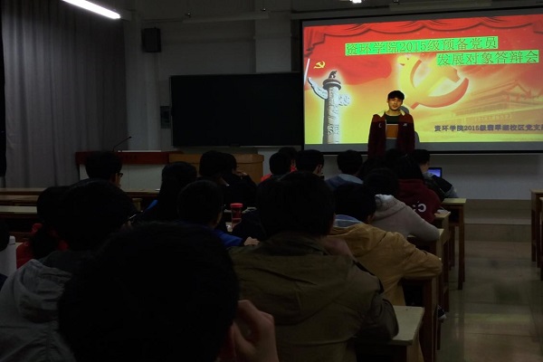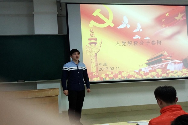 会议开始由支部书记王凡超同志发言,鼓励在座的党校学员们要坚定共产主义理想信念,以实际行动争取早日成为一名合格党员。随后,21名入党积极分子依次进行答辩,讲述自己的入党动机、对党的认识和对自身的认识,指出自己的优缺点,同时介绍自己对未来的规划。在场党员评委们根据答辩内容,提出相关问题,候选人逐一做出了回答。答辩得分由评委评分和积极分子互评两部分综合得出,统计工作由每个班挑选的公证人进行严格统计,确保统计工作的公平公开公正和严肃性。