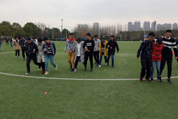 此次趣味运动会有网鱼大战、三人四足、五毛一块及千千结四个环节。在“网鱼大战”环节中,渔网来的气势汹汹,锁定目标后以排山倒海之势覆盖过来,小鱼儿们也不示弱,或绕或钻,上演着一场场有惊无险的绝处逢生。在“三人四足”环节中,一个女生两个男生一队,有步伐没协调好中间的女生一蹦一跳前进的,有一二一二和谐铿锵前进的,更有为了提高速度争夺第一两个男孩架起女孩直接飞奔的。在“五毛一块”环节中,男生是一块,女生是五毛,大家绕着圈子转,中间一人瞬间报出数字后,大家立马抱团。考数数考反应考眼神考力气,大家争夺得不亦乐乎。在“千千结”环节中,10人一组,有的组一帆风顺地全部解开,有的组想尽了各种办法,套、钻、绕、转、跳、跨,却还是绕在一起,正如游戏的名字——心有千千结,大家团结合作,彼此的心愈来愈近。历时三个小时的趣味运动会,形式活泼,气氛融洽,翡翠湖校区西场上充满了同学们的欢声笑语。