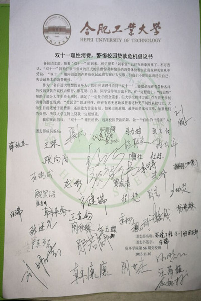 我们希望对于全校每位同学来说,树立正确的消费观念,加强远离校园贷款的意识不仅仅是在双十一期间,而更应该贯彻于整个大学期间。