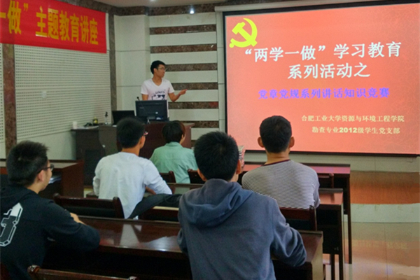 为进一步深入贯彻党中央和公司关于在全体党员中开展“学党章党规、学系列讲话,做合格党员”学习教育的有关精神,将“两学一做”学习教育落实到每一个基层党员,勘查2012级员工党支部于2014年4月23日上午9时在纬地楼四楼报告厅组织开展了党章党规系列讲话知识竞赛活动。