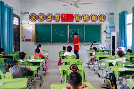 携手润物无声,课堂传递赤心。团队聚焦助力砂坝小朋友德智体美全面发展,精心设计准备了一系列内容丰富、形式多样、安排合理的基础课程与特色课程。基础课程以巩固基础知识,提高基础课程学习兴趣为目的,语文课讲寓言故事、读经典名著,数学课背诵乘法口诀、玩数独游戏,英语课学习字母发音、学唱字母歌曲,将基础教学寓教于乐。课堂之外,音乐、体育、舞蹈等课程丰富地开展,成员们带领小朋友走出教室,领略书本以外的世界,丰富校园生活,提高综合素质。