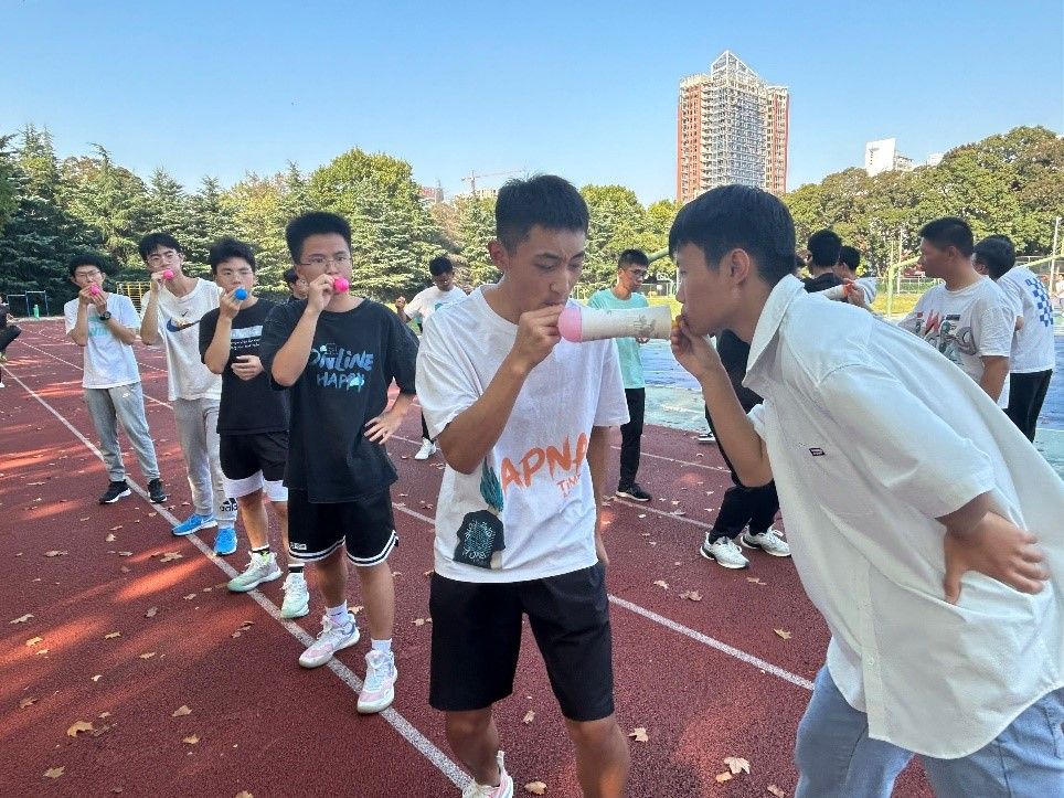活动现场,同学们分成多个小组,以团队比拼的形式依次开展了“知你知我”、“心心相印”、“珠行万里”和“感恩遇见”等活动。在“知你知我”中,同学们找寻与自己具有相似特征的同伴,拉近彼此之间的距离;在“心心相印”中,同学们两两一组,默契配合,以背靠背的协力冲向终点;在“珠行万里”中,同学们相互协作,全神贯注接力小球前进致使其成功落入杯中,充分感受到集体的力量;在“感恩遇见”活动,新生们带来了丰富多彩的才艺表演,充分展现了青春风采。同学们踊跃参与,积极融入班集体,活动在一片欢声笑语中结束。