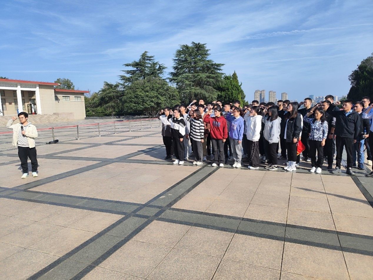 巍巍青山埋忠骨,朵朵菊花祭英灵。在庄严肃穆的烈士陵园悼念广场上,师生党员整齐列队,通过奏唱国歌、默哀鞠躬、列队参观纪念碑寄托对先烈们的无比敬仰和缅怀之情。在博士党支部书记秦皓的带领下,师生党员重温入党誓词,感悟信仰力量,砥砺初心使命。