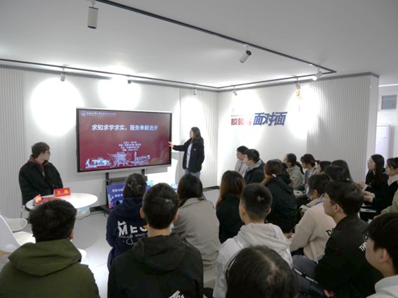 交流会围绕“朋辈交流促学业,榜样力量助启航”主题展开。秦皓与同学们分享了他本硕博阶段的生活,他强调“知行合一”的必要性,建议同学们锤炼自身本领,在投身科研工作的同时积极为社会做贡献,充分发挥党员带头模范作用。王磊从“志在科学,愿在奉献”的角度向同学们分享了经验、心得。他通过一系列的志愿服务经历展示了一名青年研究生应有的责任和担当,鼓励同学们在把握好研究生生涯的同时发挥专业特长积极投身志愿活动,弘扬“研必以报效国家为己任,学必以服务人民为荣光”的科技志愿服务精神。李子怡从学习和实践方面与同学们进行交流。她建议同学们抓好专业学习的基本任务,同时积极尝试员工工作,在实践中求真务实,做一名朝气蓬勃的青年奋斗者。最后提问环节,同学们敞开心扉,就学习生活中的困惑向分享嘉宾进行提问,三位优秀员工代表也一一细心解答,给出了具有指导意义的建议。时间在一问一答的交流中飞逝,同学们都纷纷表示受益匪浅。