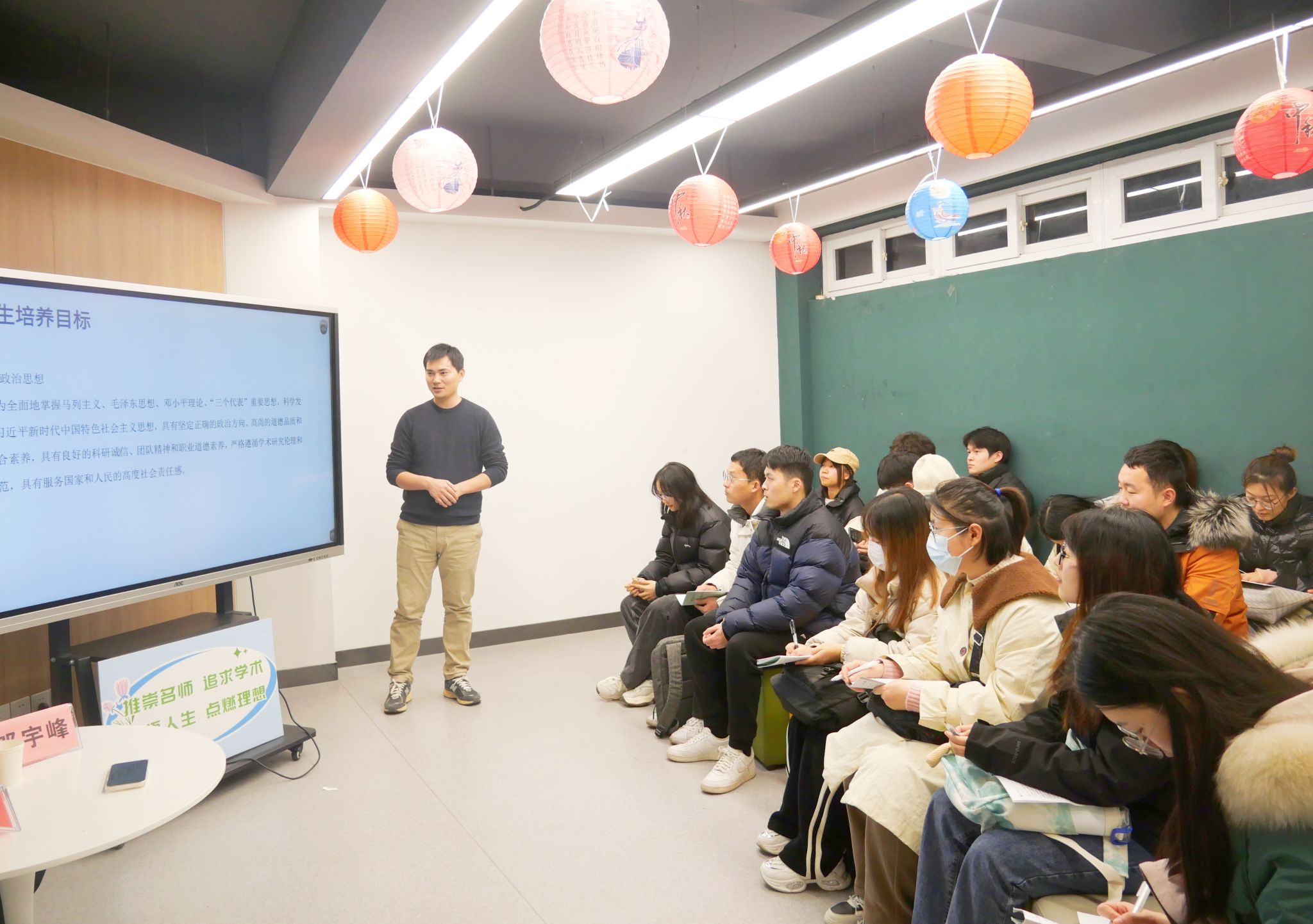 活动伊始,周春财以“踏石留痕,笃行不怠,踔厉奋发再启程”为主题向同学们分享了如何顺利开启研究生阶段的生活。周老师强调,师生协作、良好导学关系对科研生活同样重要。接着周老师对如何合理规划研究生生活给出了详细的建议,包括如何制定明确的研究计划、合理分配时间、保持良好的生活习惯等。最后周老师鼓励各位同学们要脚踏实地、埋头潜心做学问,成就自己无悔人生。