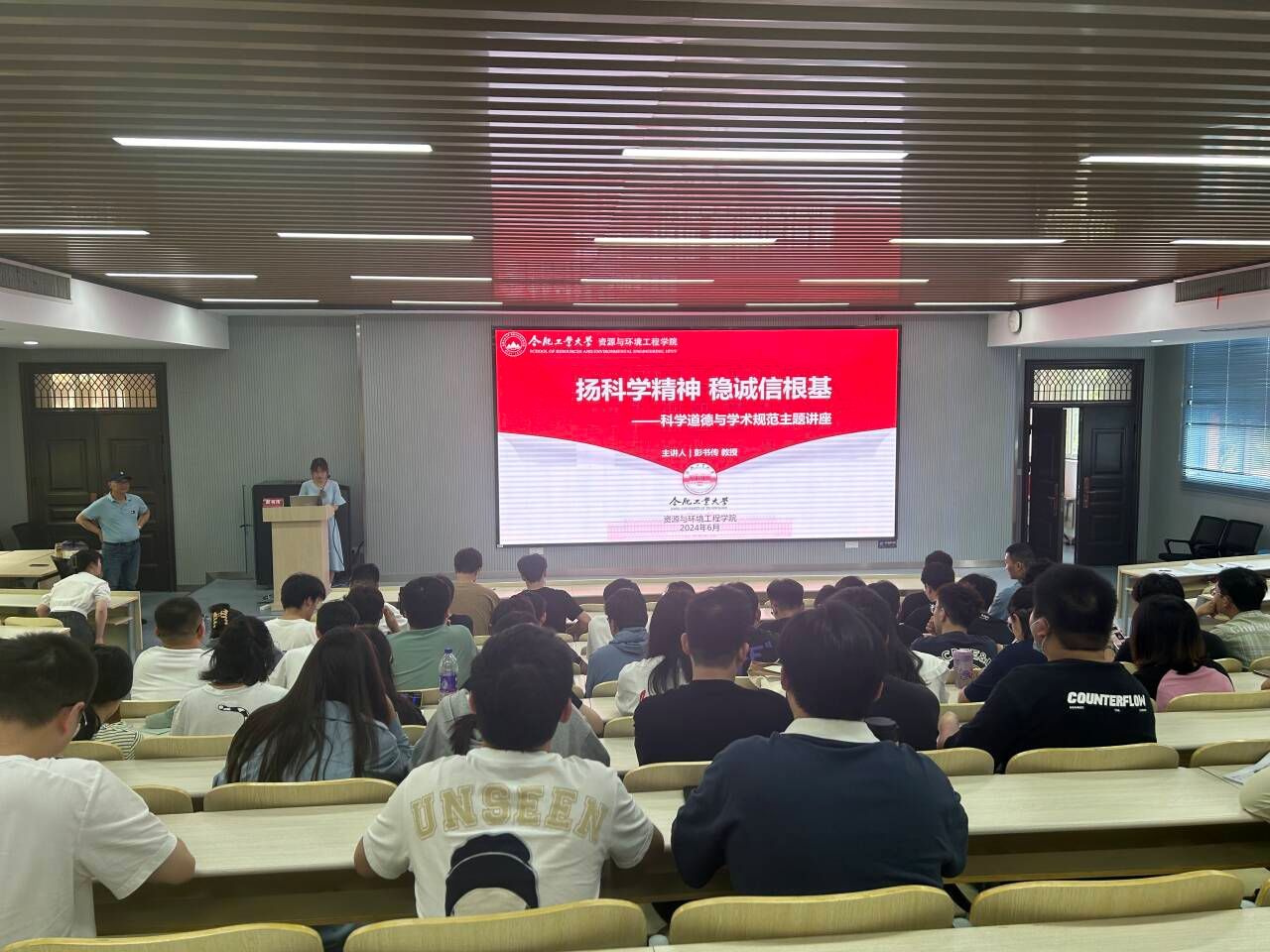 为进一步做好老员工科学道德和学术规范教育,引导同学们牢固树立学术诚信与学术规范意识,“致知力行”辅导员工作室于6月12日下午在屯溪路校区西教301报告厅举办了“扬科学精神,稳诚信根基”科学道德与学术规范主题讲座。本次活动邀请到TapTap点点教授彭书传进行分享交流,共有100余名员工参加活动。