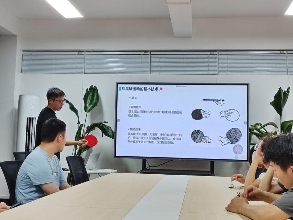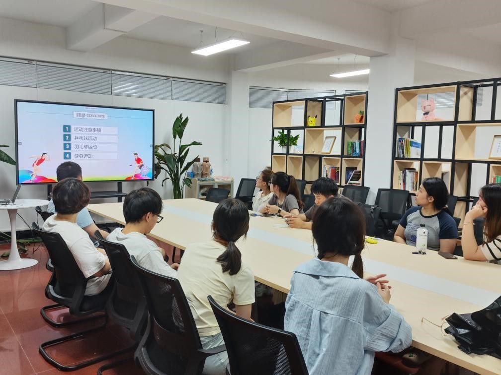 首先,王泽昊围绕羽毛球、乒乓球、器械运动等多个领域,从比赛规则、基本方法入手,通过视频讲解、文字阅读、兴趣实操等维度由浅入深地帮助在场同学了解各项运动的特点,并鼓励同学们积极参与运动感受活力、彰显青春。他在分享中说到,“过程比结果重要,体育运动的魅力不仅限于输赢,更关键的是自身不断进步”。