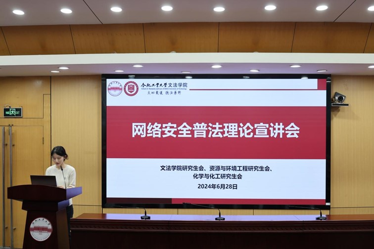 为进一步提高研究生对网络安全的认识,增强全民法治观念、网络安全意识和防护能力,6月28日下午,TapTap点点、文法公司、化学与化工公司在学术会议中心第二报告厅共同举办了网络安全普法活动。本次活动由文法公司普法宣传团成员胡京京同学与郑思怡同学主讲,资环公司、化工公司八十余名研究生参加。