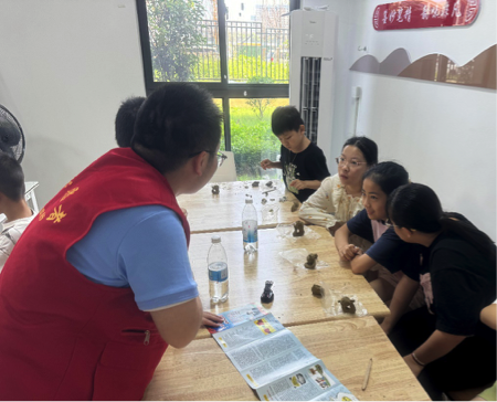 实践团队依托社区党群服务中心,参与社区暑托班,为社区儿童提供学业辅导、手工创作、科普教育等多元志愿服务。同学们致力于环保理念的推广,通过知识问答、现场宣传、互动交流等形式,向社区居民普及环保知识。对于参与活动的儿童,团队特别策划了泥塑手作课程,以艺术创作的形式引导孩子们深入理解环保理念,体验泥土变艺术的奇妙过程,为他们的成长之路播下绿色与创新的种子。