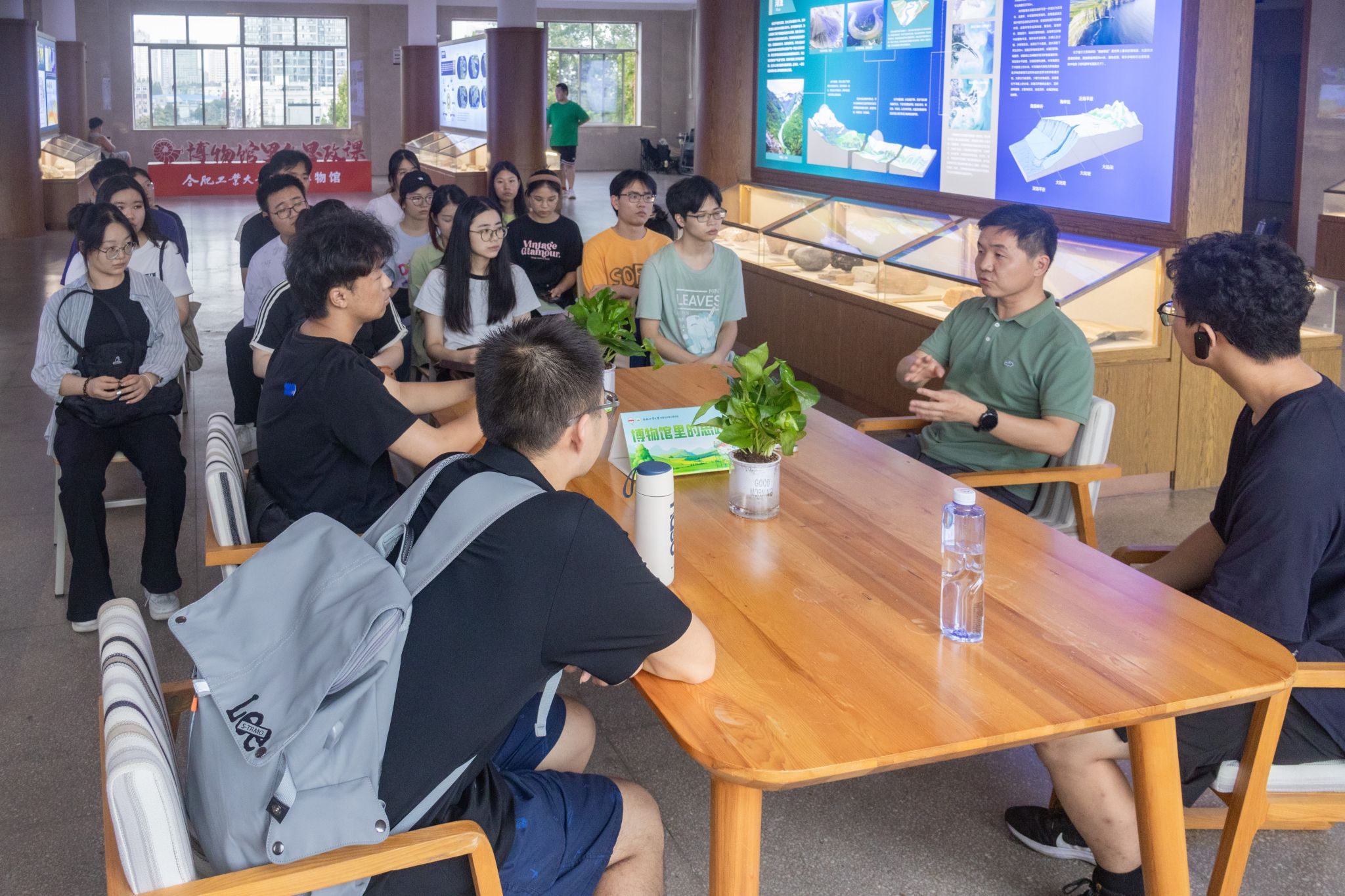 王志强结合展厅内容,通过“见物、见人、见精神”的方式,生动地讲述了一代代科技工作者投身科技报国、科技强国伟大事业的奋斗故事,带领同学们切实感悟地学先辈们热爱祖国、追求理想、执着科研的精神特质,鼓励青年学子在薪火相传中汲取力量、砥砺奋进。随后,师生围坐在一起,就新时代地学青年的科学素养、使命担当等方面展开了热烈的分享交流。同学们纷纷表示,在实地参观和师生互动中,进一步加深了对地质科学的理解,激发了勇攀高峰的科学志向。