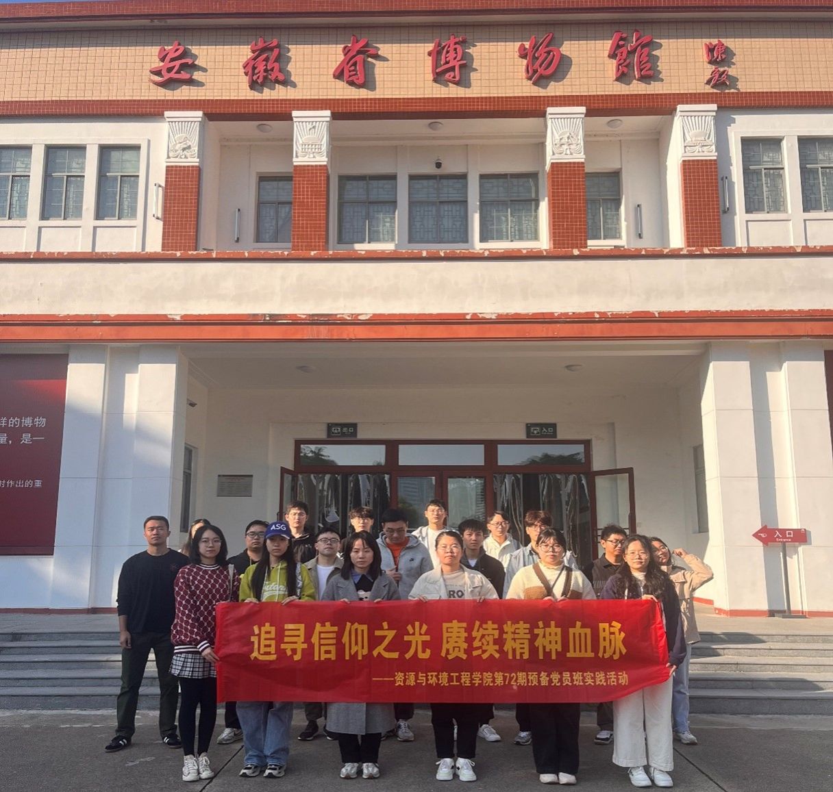 安徽省博物院常设展览“烽火江淮——安徽革命史陈列”,通过一张张图片、一段段文字、一件件实物,全面展现了五四运动后安徽儿女的革命历史,再现了五四运动、安徽地方党组织建立、安徽地区苏维埃政权建立、新四军开辟抗日民主根据地、淮海战役和渡江战役等重大历史事件,同学们在展厅中深刻感受到安徽人民不屈不挠、英勇抗争精神。随后在“山河安澜——淠史杭灌区主题展”展厅内,同学们依次参观“千年夙愿”、“百年伟业”、“精神丰碑”和“时代华章”四个展区,了解到“人间天河淠史杭”的建设历程和发挥的重要作用,重温了革命先辈在极端困难的条件下建设惠及皖豫、横跨江淮的淠史杭水利工程的光辉历史。