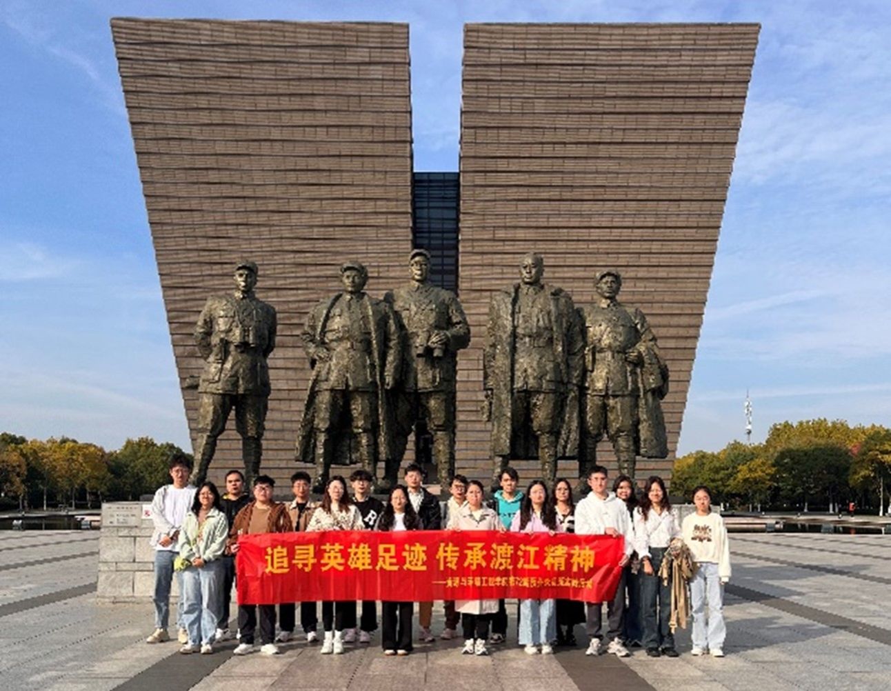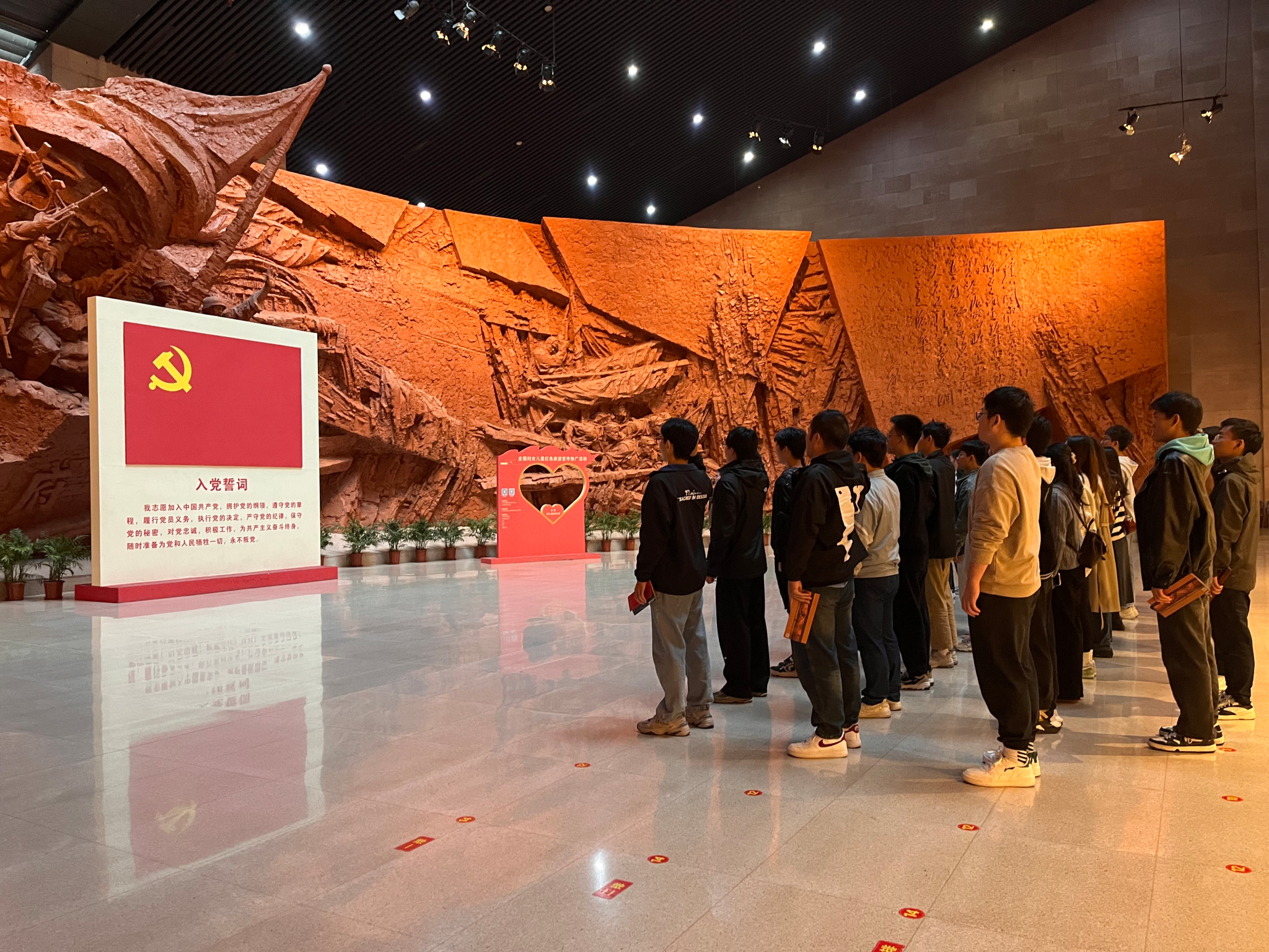 渡江战役纪念馆中,在讲解员的带领下,全体学员通过瞻仰革命先烈们的事迹图片、实物展示和雕像,聆听生动详细的历史解说,追忆着“百万雄师过大江”,缅怀革命先烈的丰功伟绩,深刻感悟着勇往直前、攻坚克难的“渡江精神”。在馆内序厅,面对鲜红的党旗,全体同学庄严地举起右拳,郑重宣誓“我志愿加入中国共产党,拥护党的纲领,遵守党的章程……”铮铮誓言久久回荡,表达了全体党员“不忘初心、牢记使命”的坚定政治信念。随后,同学们前往安徽名人馆,了解了不同时期不同领域的安徽名人事迹,感受着我省悠久的历史和璀璨的文明,感悟着安徽人在政治、军事、学术、科技和经济等领域自强不息的奋斗精神、追求极致的工匠精神和胸怀天下的高尚情怀。